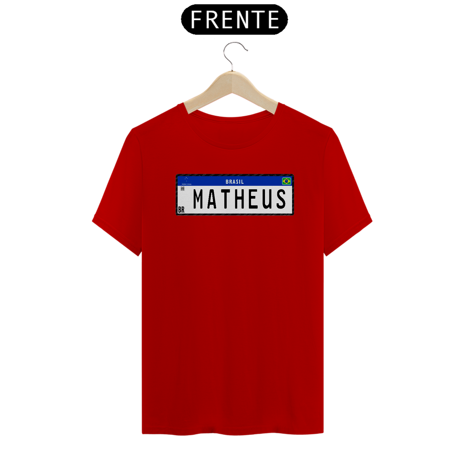 Camiseta Placa Veicular Mercosul com Estampa do nome MATHEUS